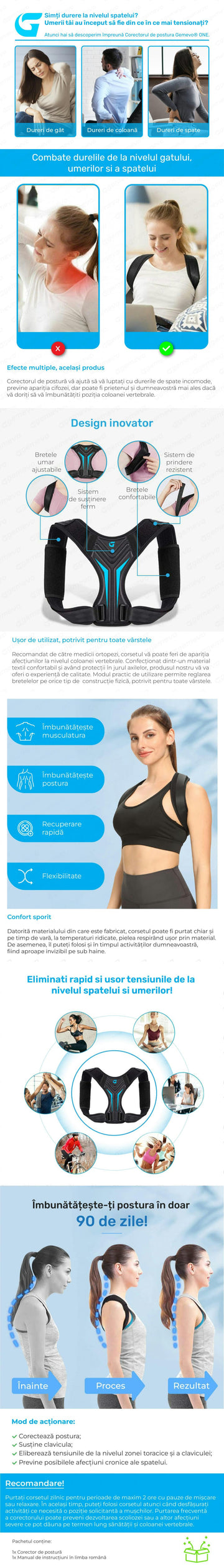 Alege Gemevo® ONE, un corector de postură ergonomic ce asigură îndreptarea coloanei vertebrale într-un mod confortabil și eficient, contribuind la prevenirea durerilor și la îmbunătățirea posturii zilnice.