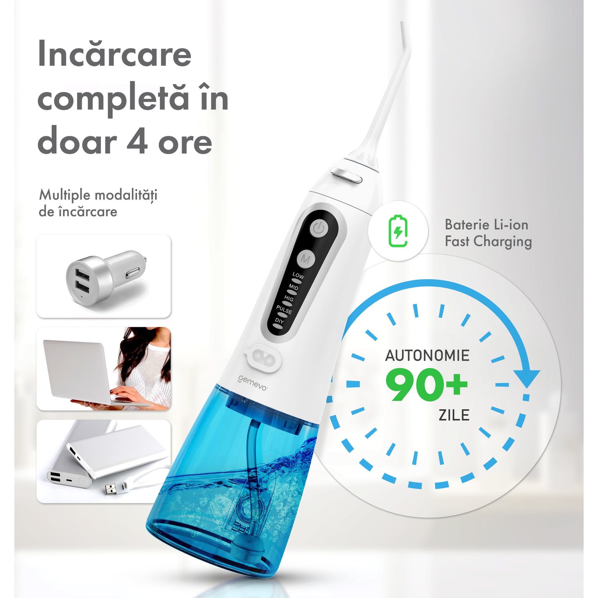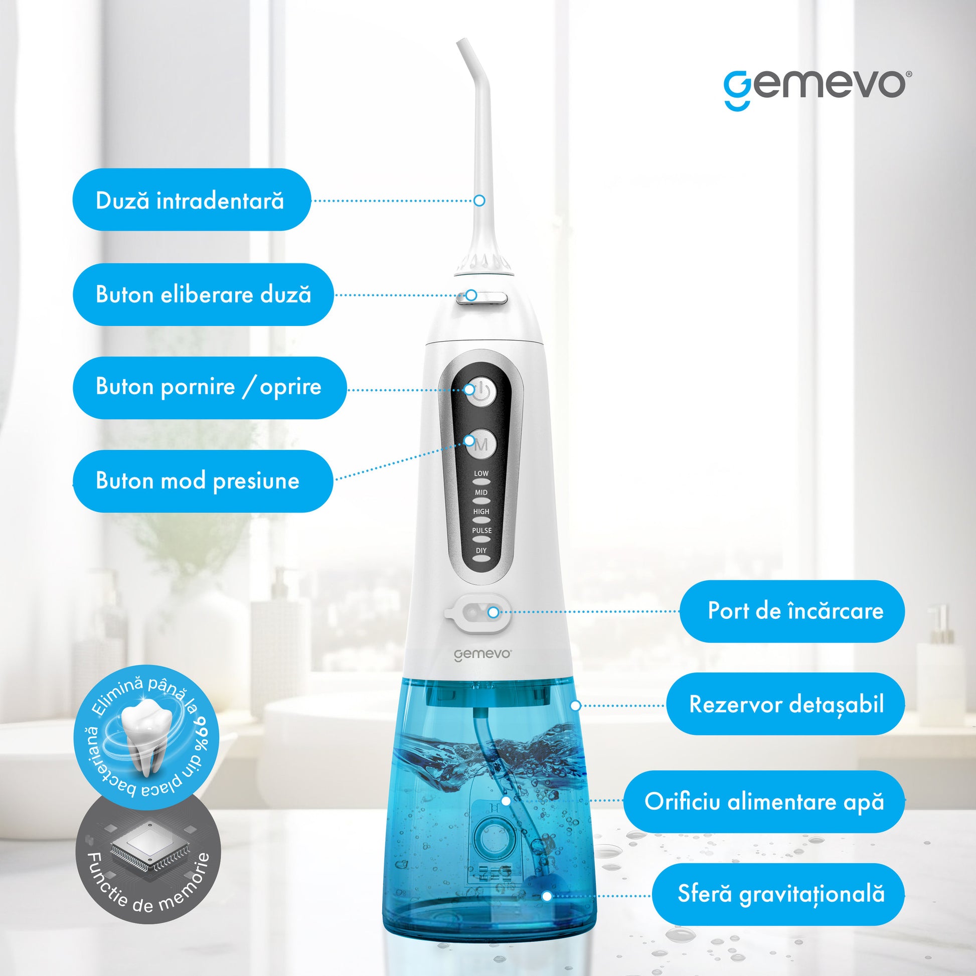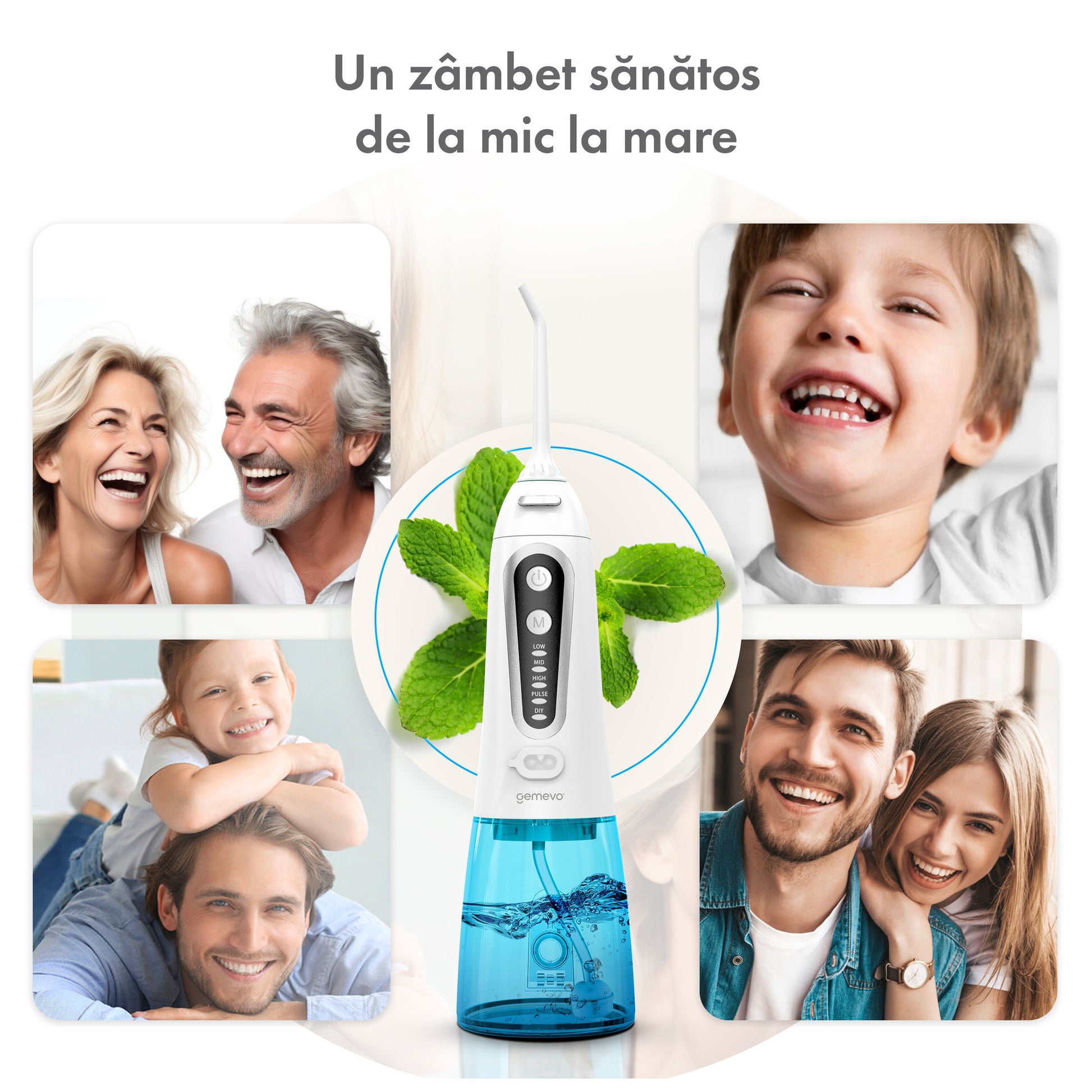 Irigator Oral Gemevo® Family, 5 Trepte de presiune, Alb/Albastru