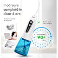 Durata maximă recomandată pentru încărcare este de 4 ore. În acest interval irigatorul se va încărca complet, fapt semnalat de beculețele led care vor sta aprinse. Pe toata durata încărcării ledu-urile se aprind intermitent. Când se încarcă complet acestea nu vor mai licări.