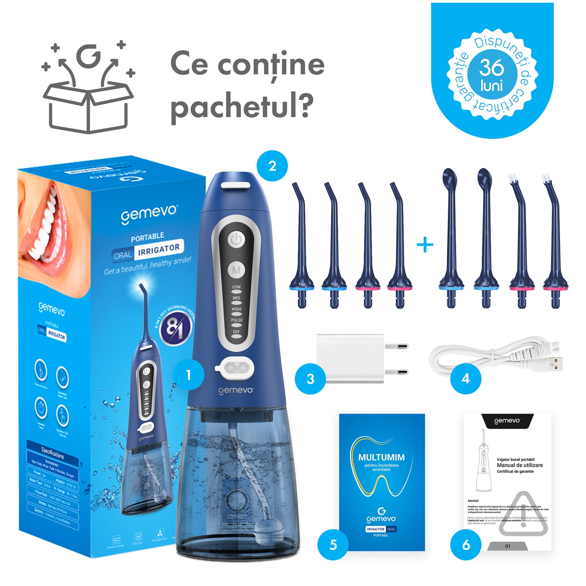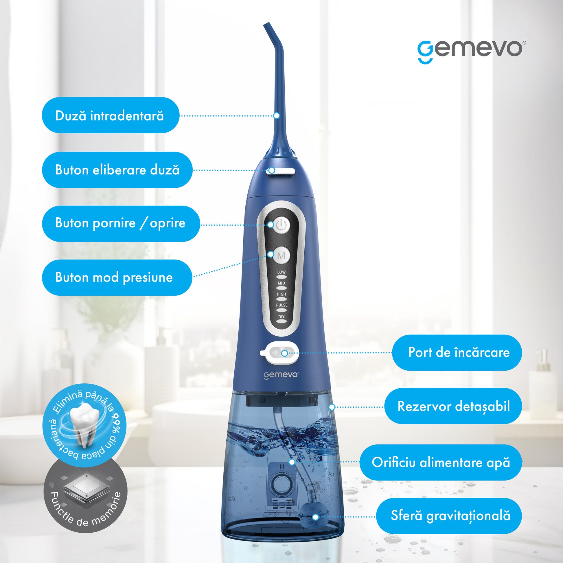 Irigator Oral Gemevo® Family, 5 Trepte de presiune, Albastru