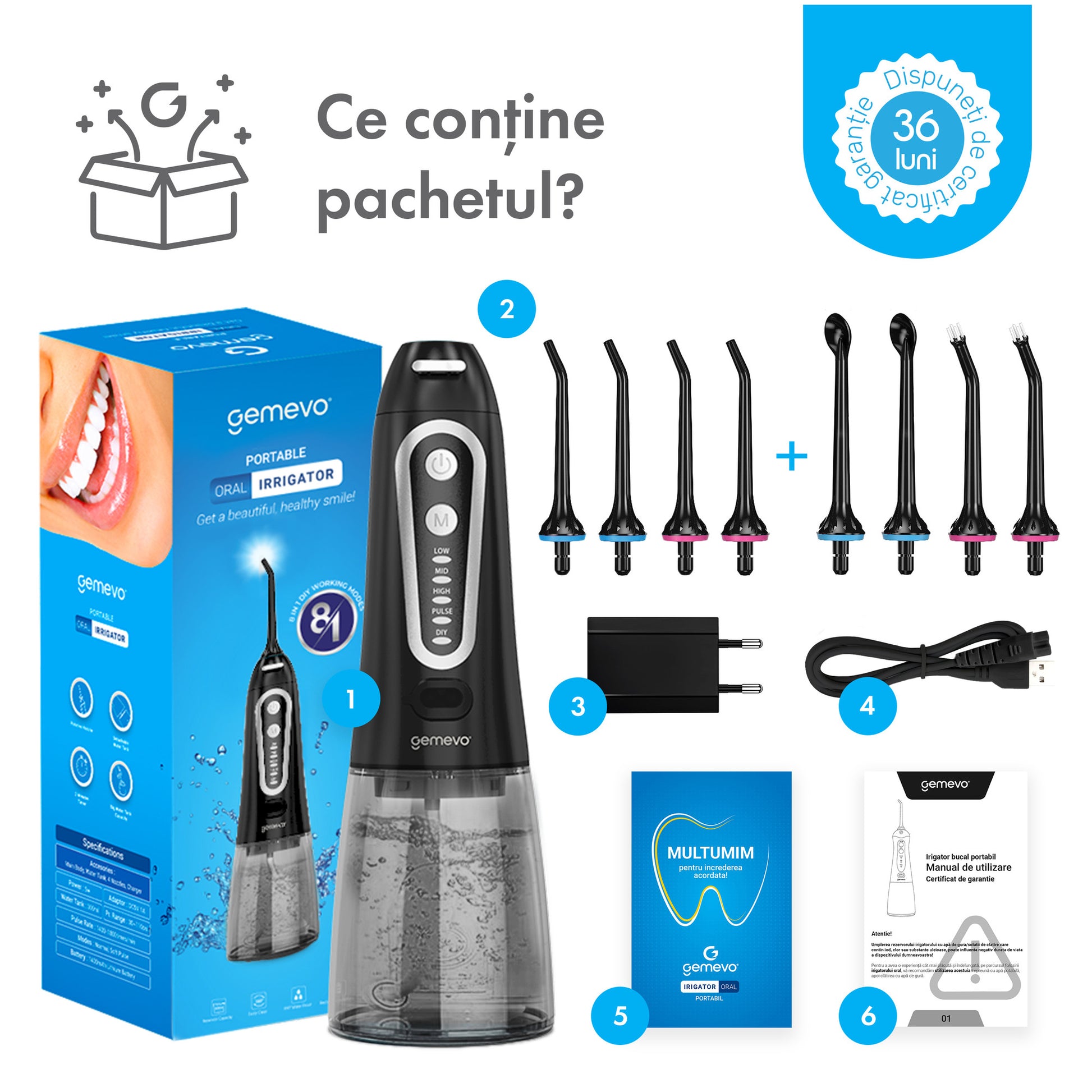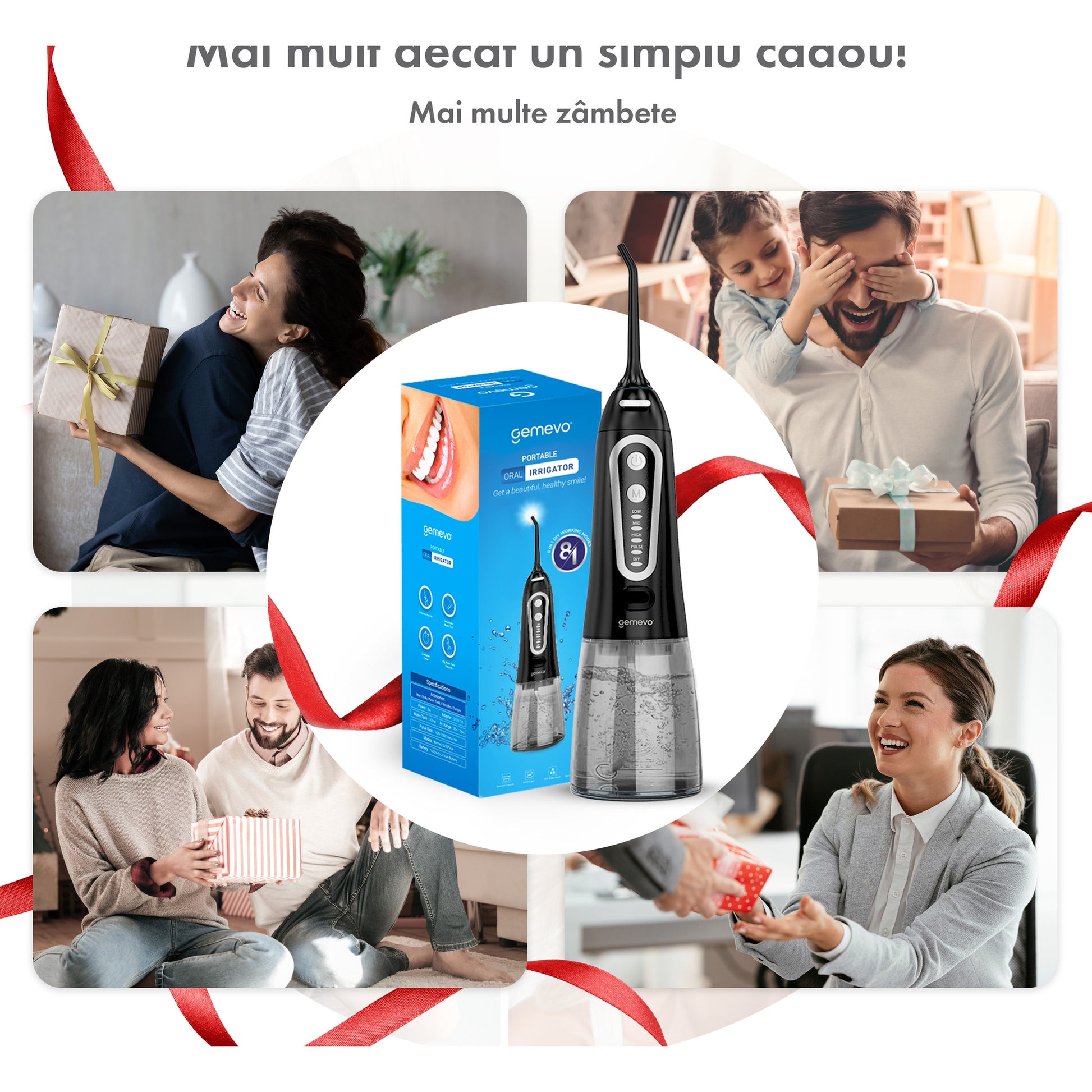 Cu un dus bucal Gemevo, întreaga familie beneficiază de o soluție de îngrijire orală de înaltă calitate. Asigură-te că zâmbetul tău strălucește zi de zi, alegând tehnologia avansată și performanța oferită de Gemevo.