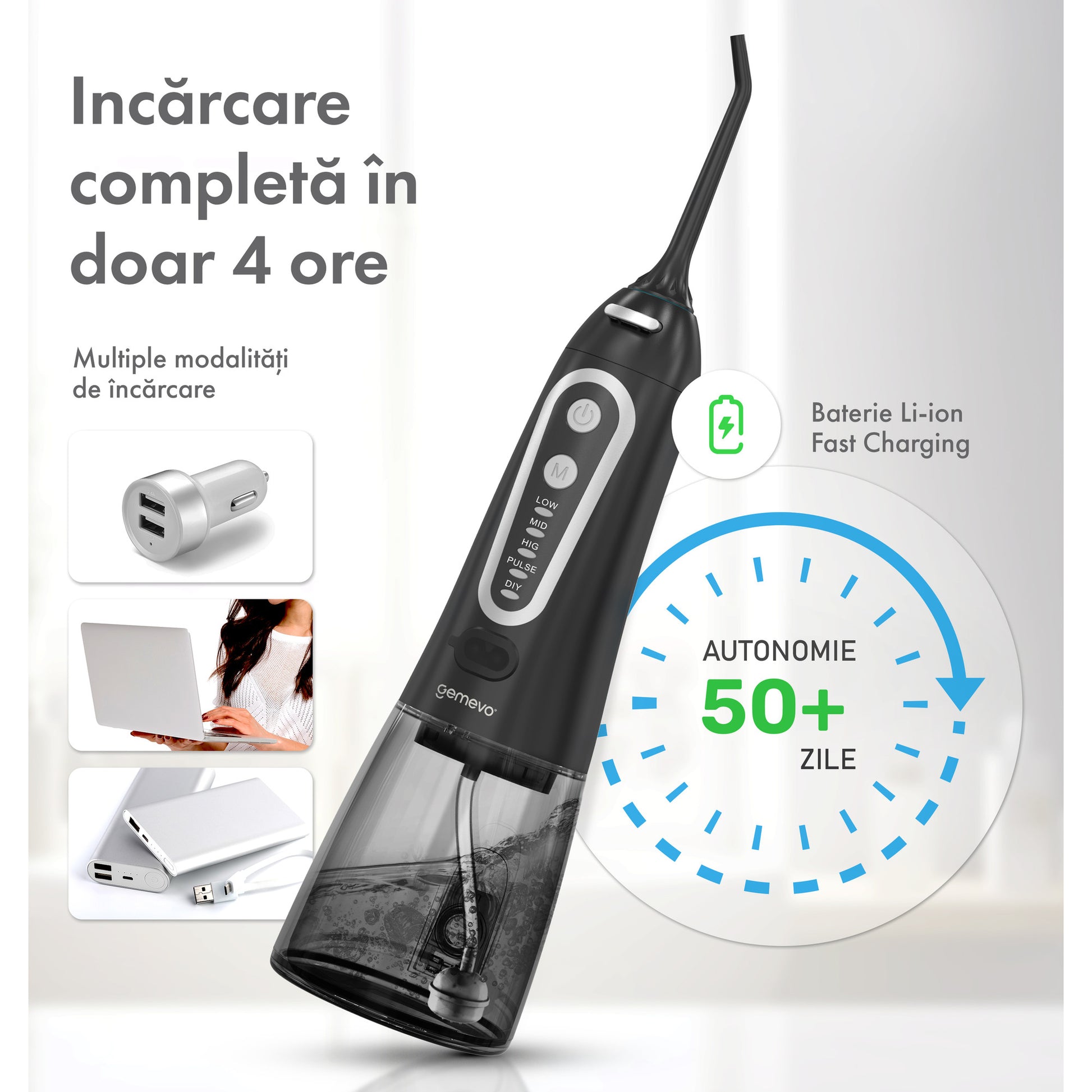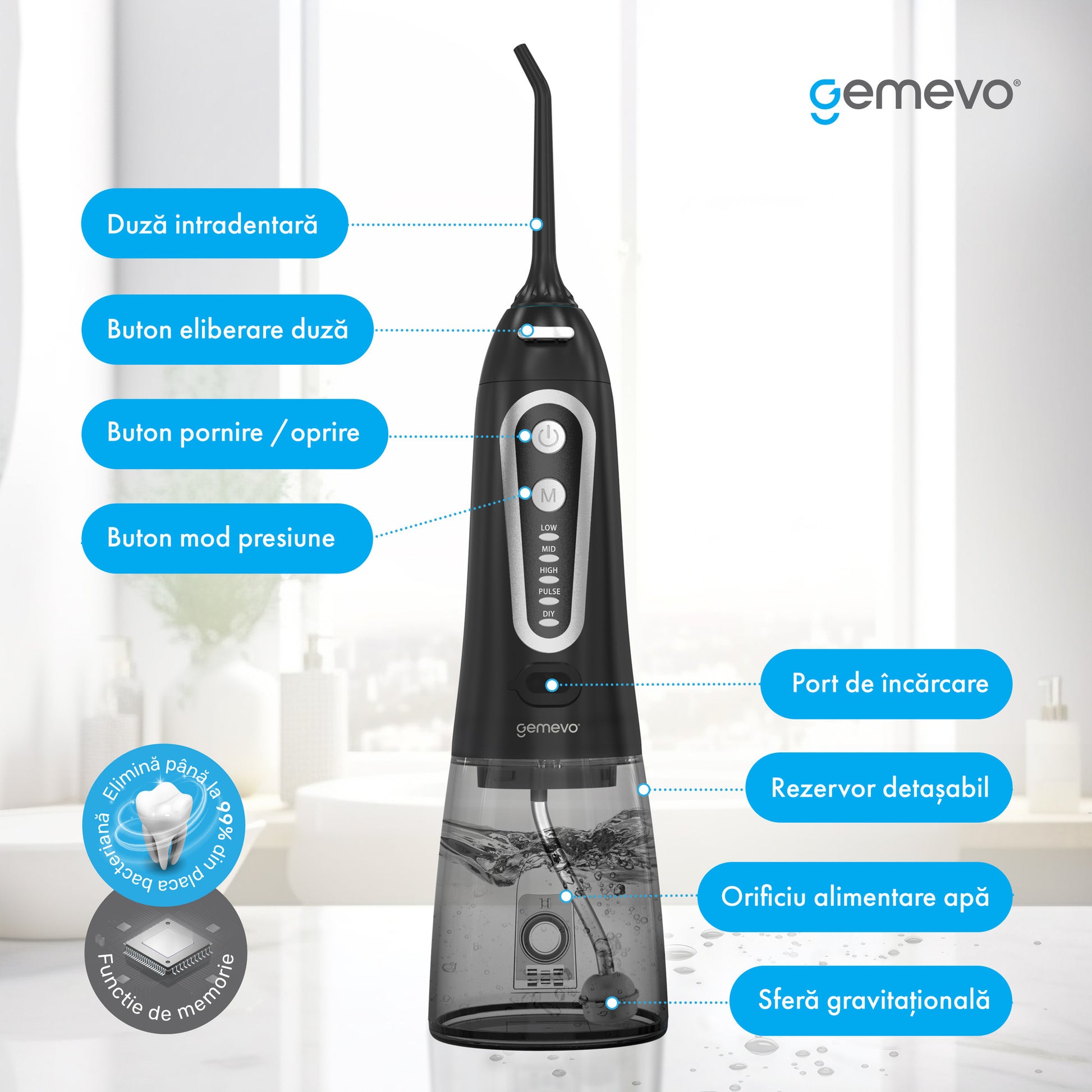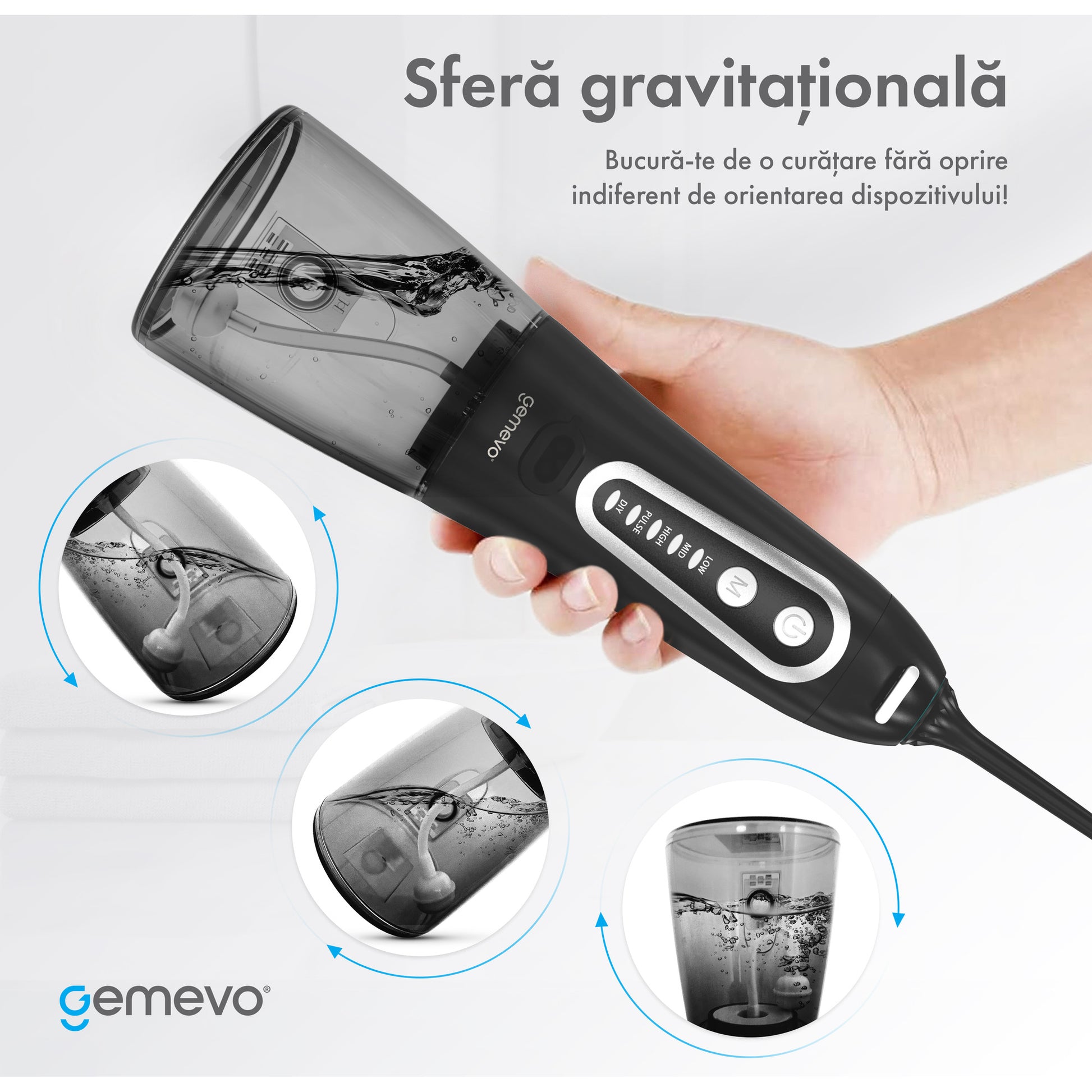 Irigator Oral Gemevo® Family, 5 Trepte de presiune, Negru