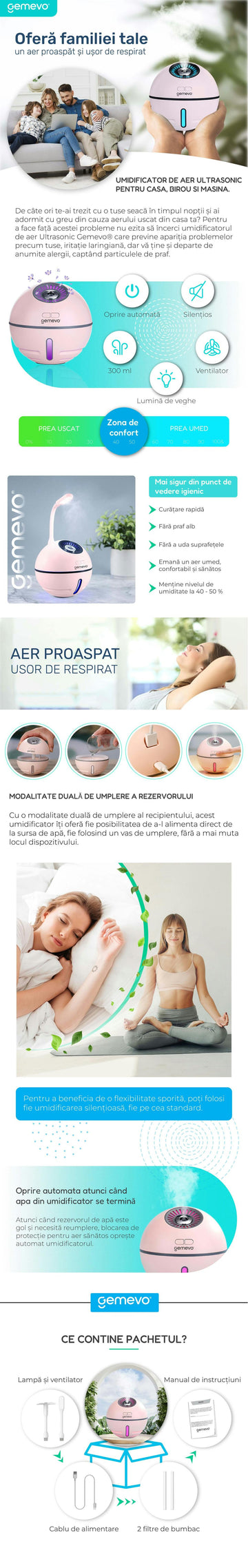 Alege pentru casa ta acest umidificator de aer de la Gemevo care menține un nivel optim de umiditate, prevenind uscarea aerului și îmbunătățind calitatea acestuia.
