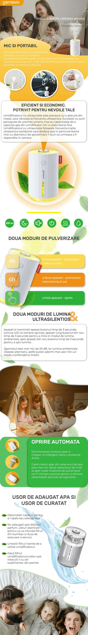 Umidificator de aer Ultrasonic Gemevo® , Alb